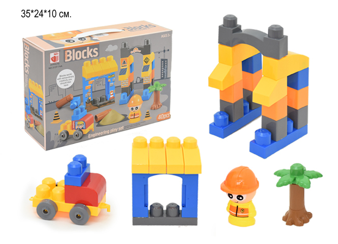 Конструктор арт. 313T-74A "Стройка" блоки 40 дет. в кор. 35*10*24 /24шт./Возраст: 3+