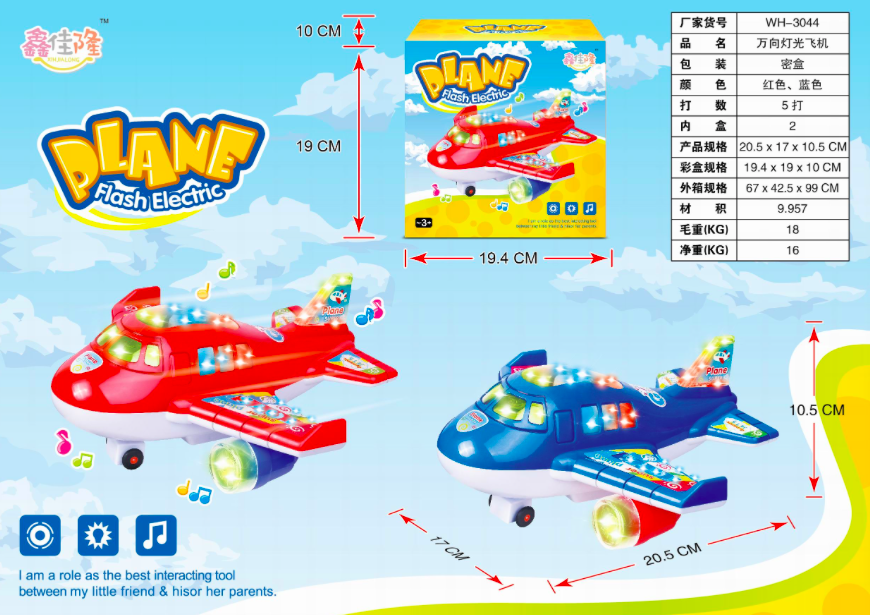Самолет арт. WH-3044 На батарейках, звук, свет в кор. 19,4*10*19