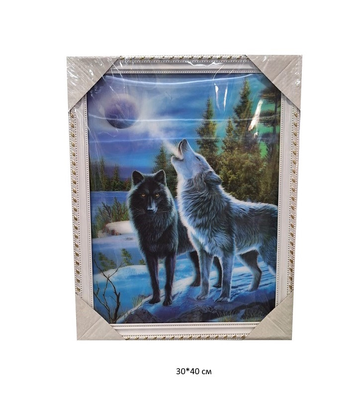 Картина объемная арт. 502840 Волки в ночном лесу 3D в пак.