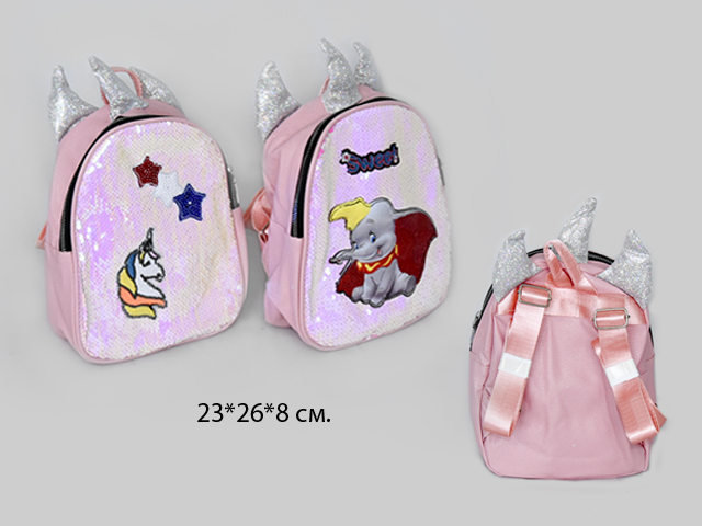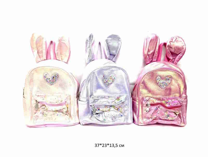 - Рюкзак арт. MD-516 Блеск с ушками цвета микс в пак._×Рюкзак арт. MD-516 Блеск с ушками цвета микс в пак._Детский блестящий рюкзачок с очаровательными заячьими ушками порадует самых маленьких. Малышка не захочет расставаться с ним. Лямки регулируются по длине, главное отделение закрывается на замок-молнию