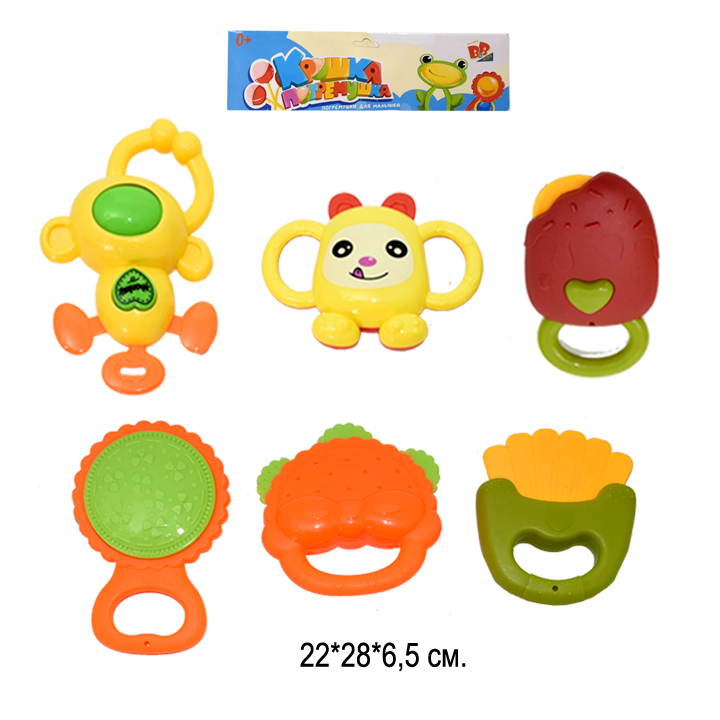 - Погремушка арт. 508-32" Набор 6 шт. 22*6,5*28 /120шт.//бл.60/×Погремушка арт. 508-32" Набор 6 шт. 22*6,5*28 /120шт.//бл.60/Погремушка — это первая игрушка малыша. Красочный предмет знакомит новорождённого с окружающим миром. Он развивает у ребёнка пространственное мышление, а также слуховое, зрительное и тактильное восприятие.
