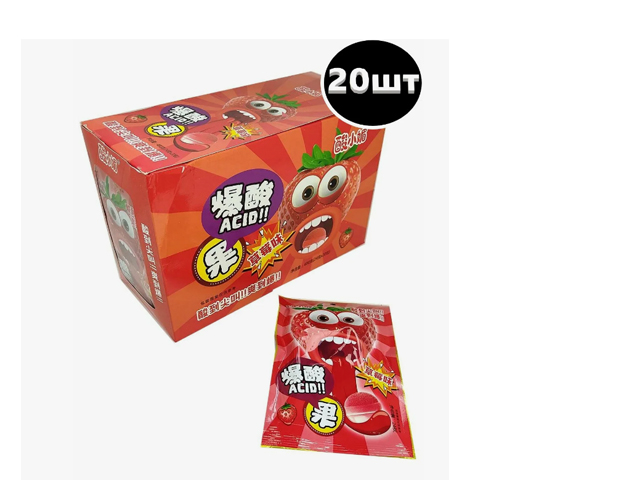 Конфета арт. 950185-4/950178-4 Кислая "Клубника" 24 г 20 шт. в красной кор.,;