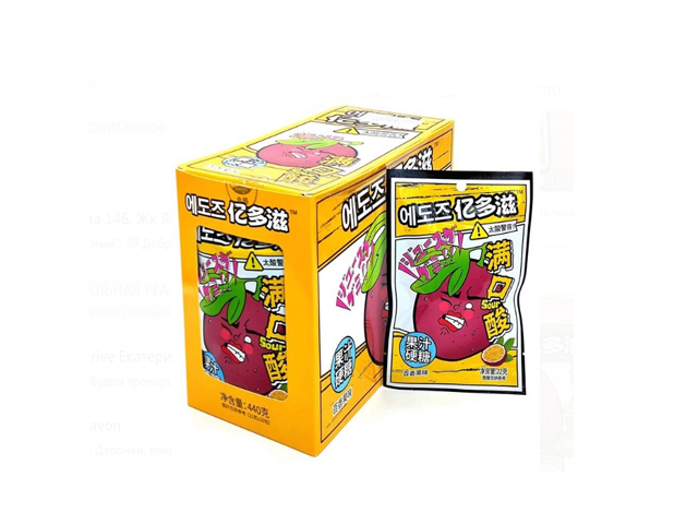Конфета арт. 640084-4 Жевательная кислая "Маракуйя" 22 г 20 шт. желтая кор.;*