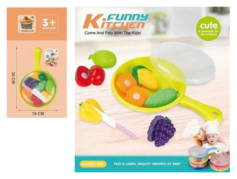 Игровой набор арт. 1018-38 Сковорода с нарезными овощами, фруктами в сетке 30*19