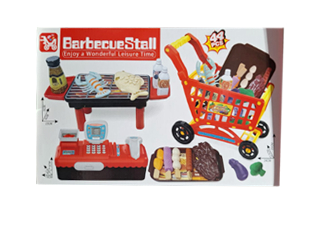 Супермаркет арт. 71022-123 Барбекю с тележкой, кассой, продуктами, 44 предмета в кор.=