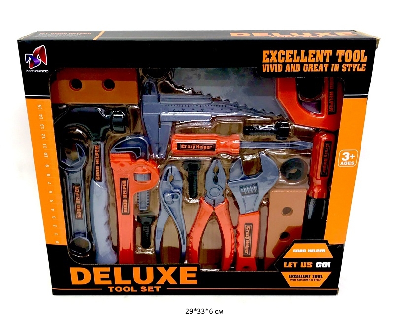 Набор включает практически все инструменты, с помощью которых ребенок сможет отлично пофантазировать и вообразить себя мастером на все руки. Это замечательный способ помочь папе, познакомить юного мастера с известными инструментами, с их назначением и принципом работы. В комплекте: пила, молоток, гаечный ключ, разводной ключ, шангенциркуль, отвертки, плоскогубцы, пассатижи, гайки, шурупы и крепежные элементы.