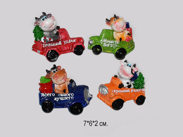 Магнит керамический арт. 8616 "Бычок на машинке" 1шт. (24шт.) в кор.