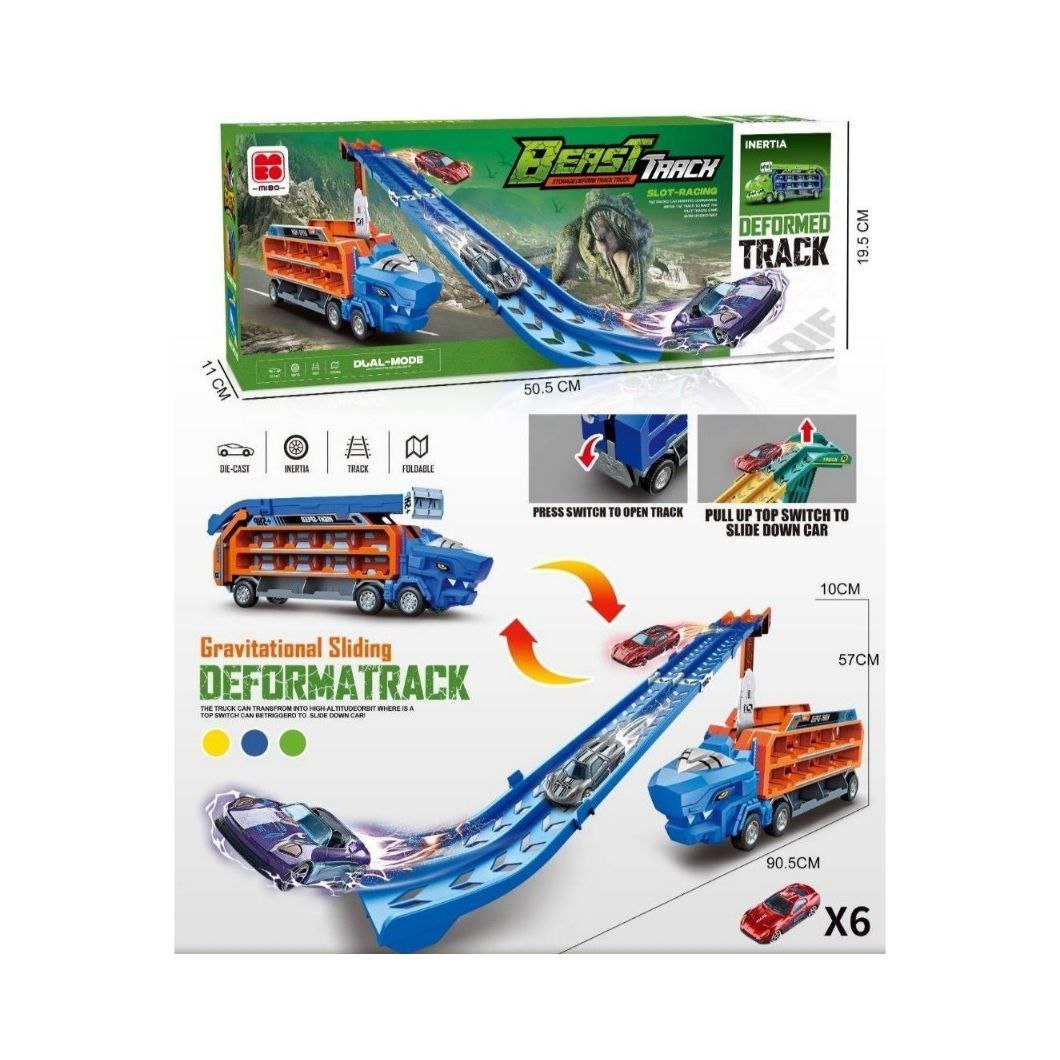 Машина инерц. арт. CY-2249 Автовоз "Дино" с трассой+6 машин в кор. 50,5*11*19,5