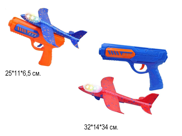 Аэроплан арт. T801A-7 Сборный с пистолетом для запуска свет. цвета микс в пак.•/120 шт./