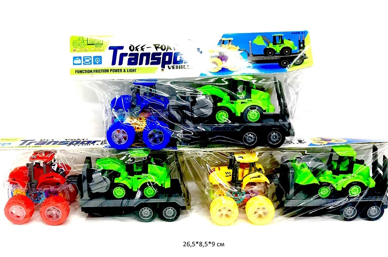 Машина инерц. арт. YM-1112G1 Трактор со спецтехникой в прицепе свет, шестеренки в пак._