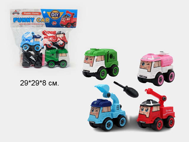 Машина констр. арт. LY032A Набор "Стройка" 4 шт. с отверткой в пак.•