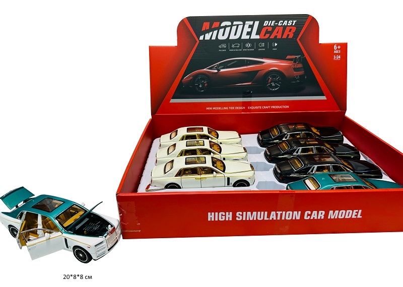 Модель металл. арт. 1900-12 Роллс-Ройс инерц. свет, звук (8 шт.) шоубокс•У модели открываются все двери, капот и багажник, детально проработанный салон, световые и звуковые эффекты. Игрушка с инерционным механизмом: оттяните ее назад и отпустите - машинка умчится вперед, набирая скорость.