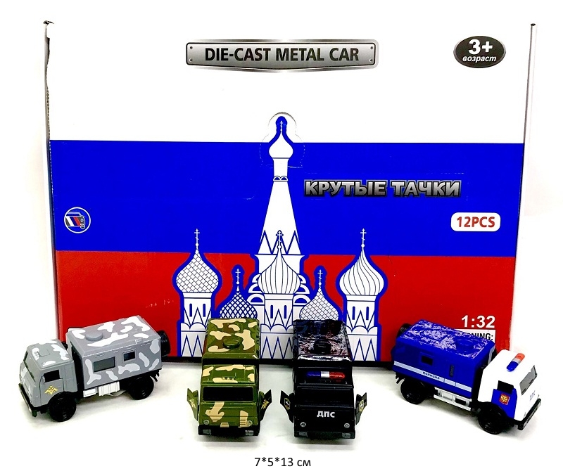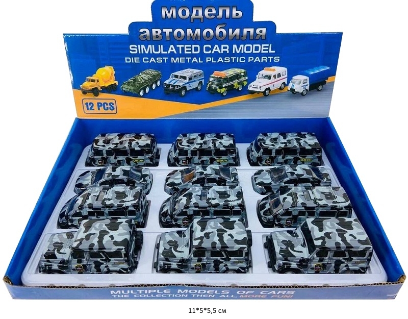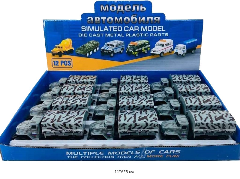 Модель металл. арт. 200-3 Военный грузовик (12 шт.) шоубокс~Инерционный механизм