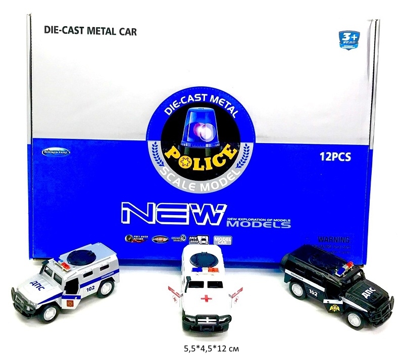 Модель металл. арт. 2415B ВАЗ ДПС инерц. свет, звук (12 шт.) шоубокс•У модели открываются все двери, капот и багажник, детально проработанный салон, световые и звуковые эффекты. Игрушка с инерционным механизмом: оттяните ее назад и отпустите - машинка умчится вперед, набирая скорость.
