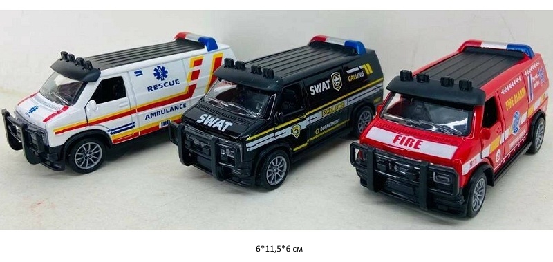 Модель металл. арт. 1900-41RU BMW Пожарная, Полиция свет, звук (12 шт.) шоубокс~