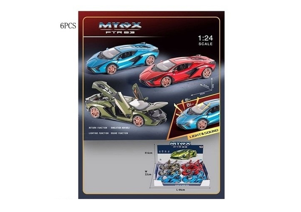 Модель металл. арт. 1900-6 Суперкар свет, звук (12 шт.) шоубокс_~/10 шт./