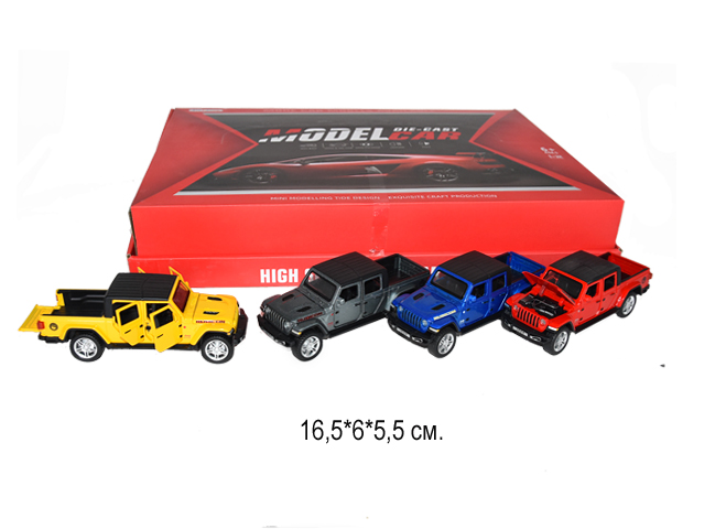 Модель металл. арт. 1900-9 Джип Пикап свет, звук (12 шт.) шоубокс+~=Длина 16,5 см. При нажатии на капот или открытии дверей, издаются звуковые и световые эффекты.