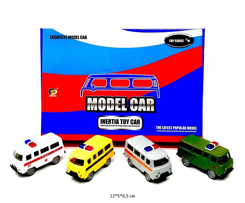 Модель металл. арт. 688-2A УАЗ Пожарная, Скорая, Дети (6 шт.) шоубокс_Модель металл. арт. 688-2A УАЗ Пожарная, Скорая, Дети (6 шт.) шоубокс_
