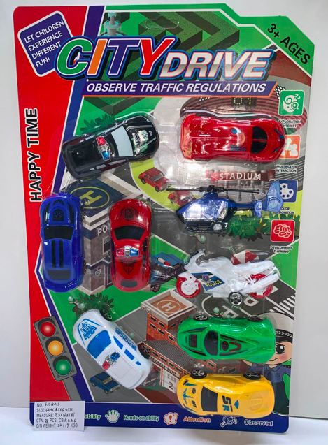Набор машин арт. 655Q013 7 шт. с вертолетом, мотоциклом блистер 43,5*18,5*4,5