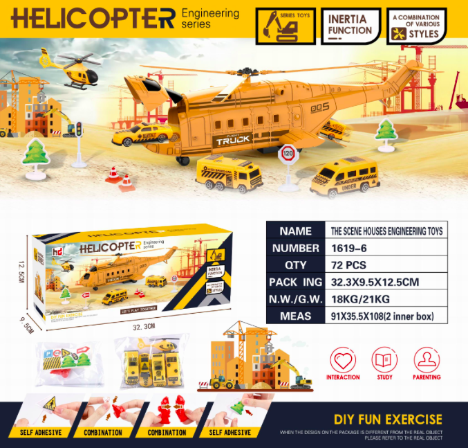 Набор машин арт. 1619-6 "Инженерная служба" в вертолете в кор. 32,5*9,5*12,5 /72шт./