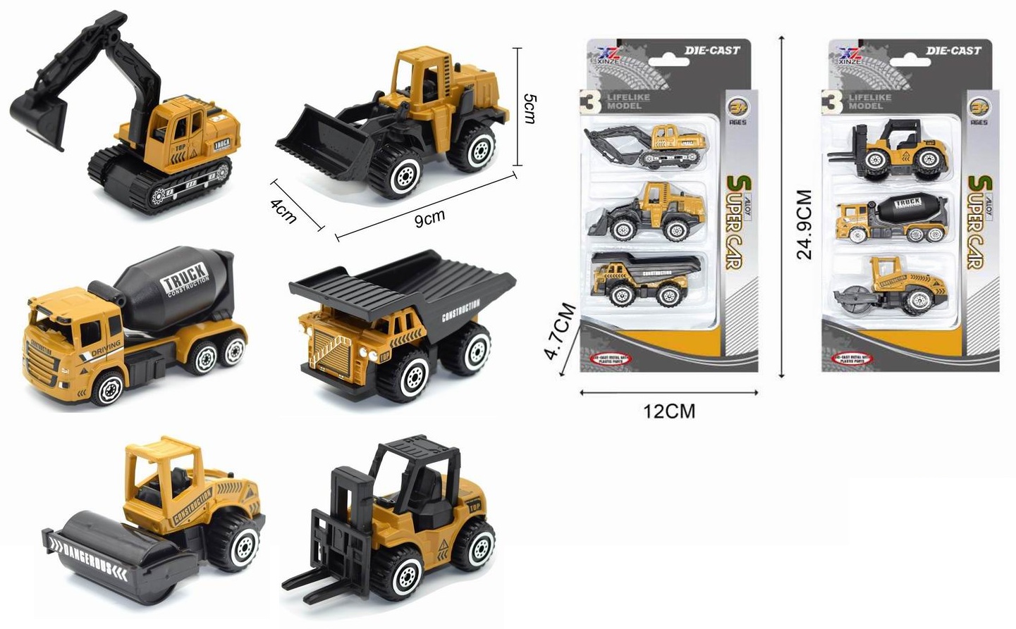 Набор машин арт. 353-1CXZ" Строительная техника 3шт. металл в коробке 12*4,7*24,9