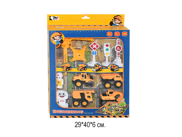 Набор машин арт. 0783-225 Спецтехника с дорожными знаками в кор.**