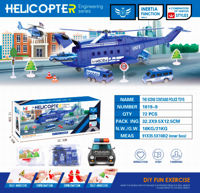 Набор машин арт. 1619-9 "Полиция" в вертолете в кор. 32,5*9,5*12,5 /72шт./
