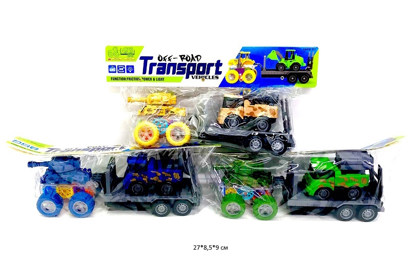 Танк арт. YM-1108G1 Инерц. с грузовиком в прицепе свет, шестеренки в пак._