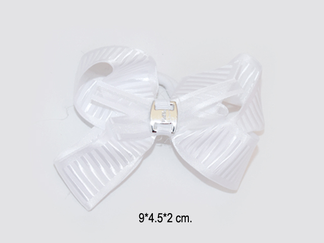 Бант арт. KP-5768 Белый шелковый полоска поперечная на резинке (24 шт.) на листе