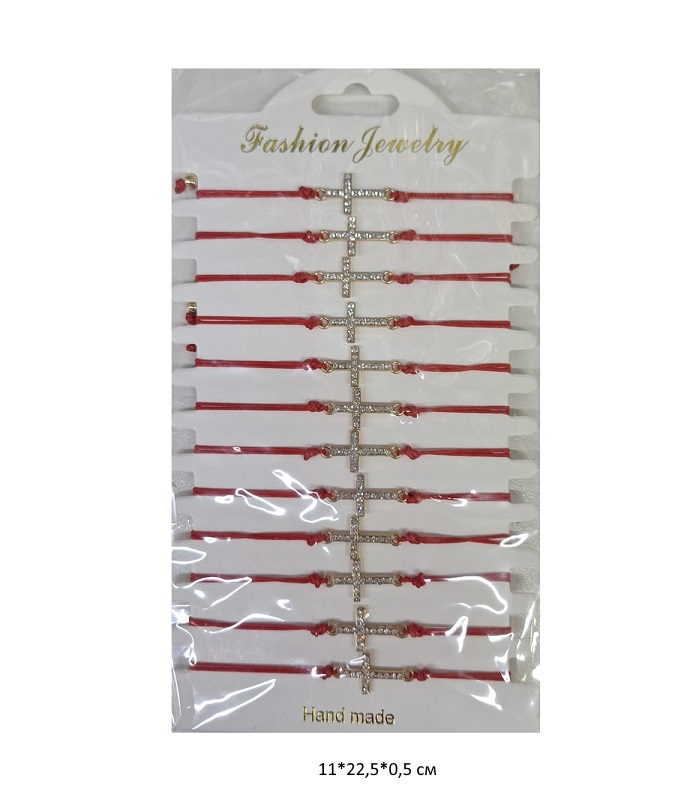 Нить красная арт. 033060-10 Золотой крест в стразах с глазом 12 шт. в пак.