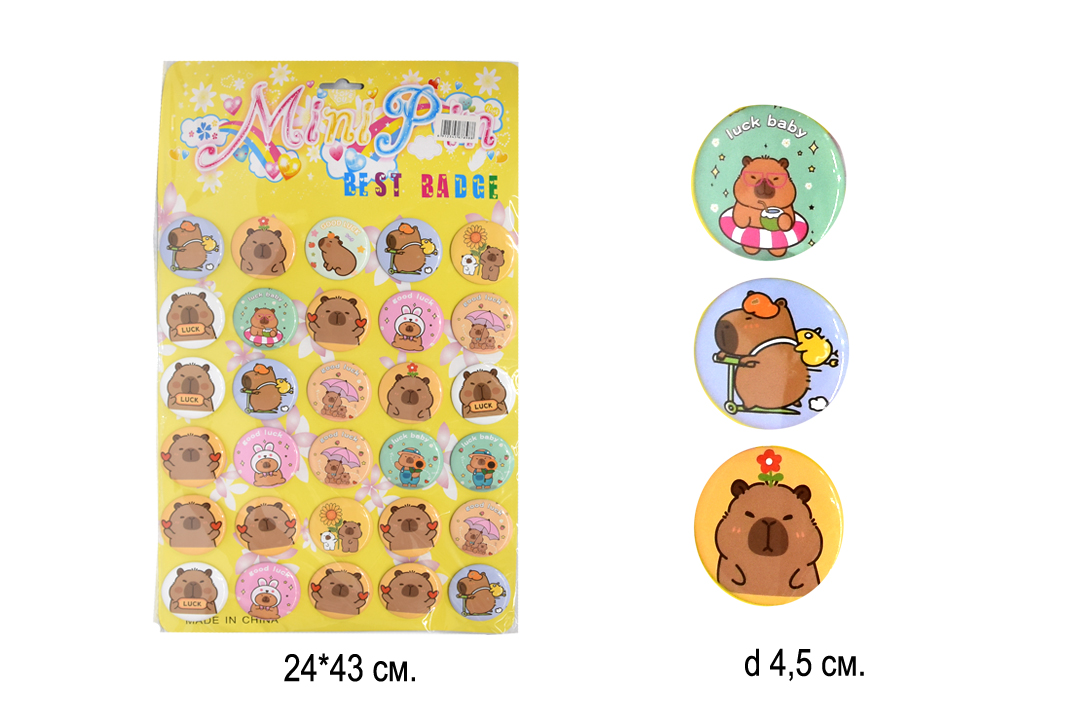 Брелок арт. 1030-209 Зеркало круглое золотое "Капибара" двустороннее в пак.