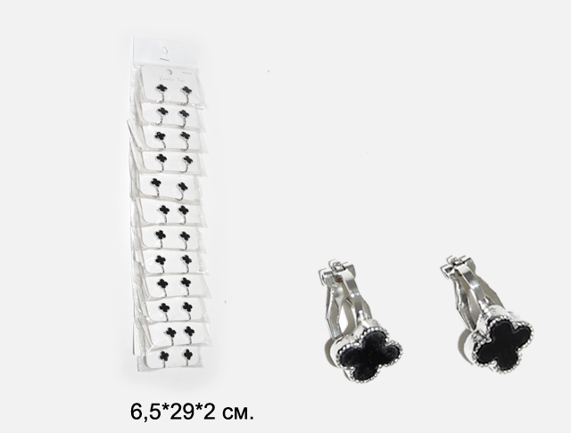 Набор украшений арт. 783-709 Клипсы клевер чер.-серебро (12 шт.) в пак.