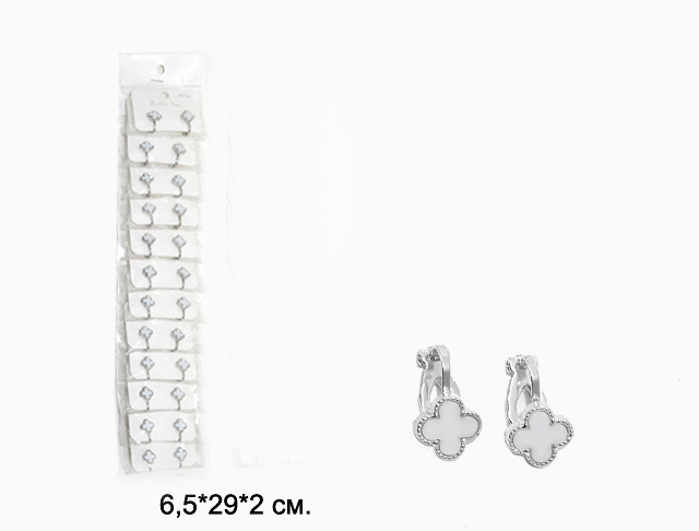 Набор украшений арт. 782-709 Клипсы клевер бел.-серебро (12 шт.) в пак.