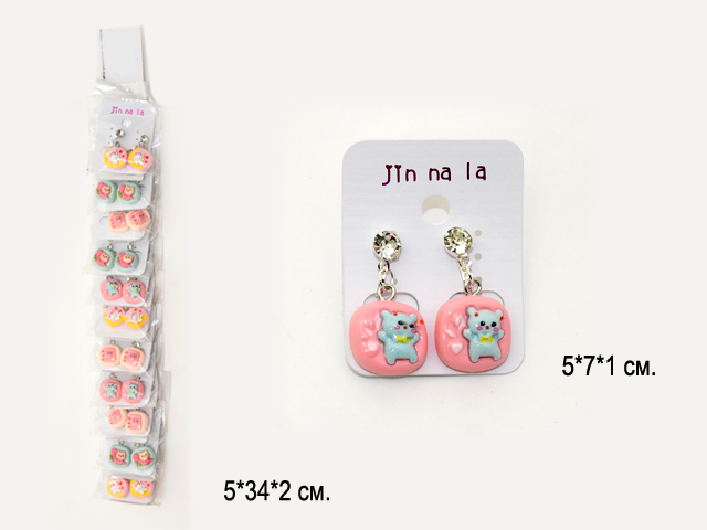 Набор украшений арт. 709019 Клипсы Зверушка 1 пара квадратные в ассортименте (12 шт.)
